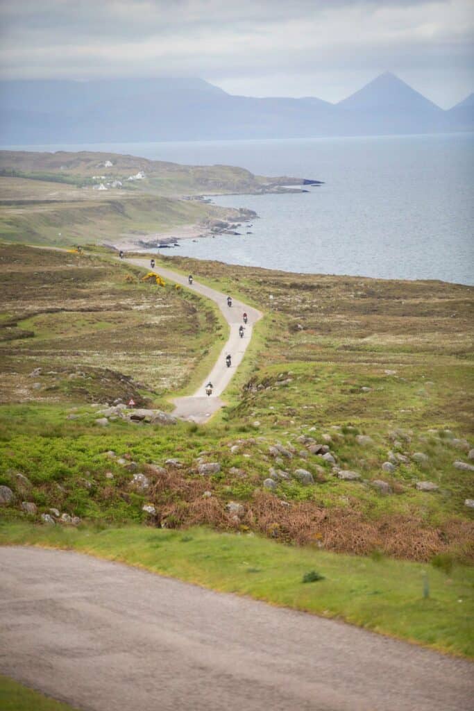 Arguably the best day of riding, day four will take us across the Kyle of Tongue along the North Coast of Scotland and remote wilderness. Surrounded by ancient munros, we will ride south on the wild west coast and take a coffee break at Ullapool, before reaching our destination in the Torridon mountains.